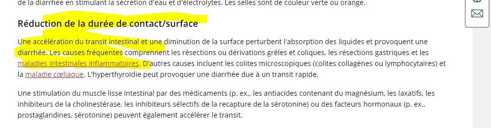 donne un exemple de diarrhée qui serait par réduction de la durée de contact/surface