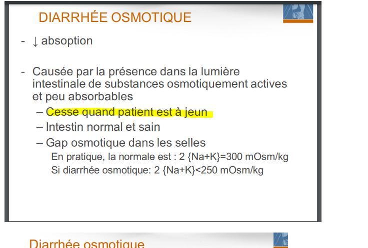 donne un bon indice que diarrhée osmotique