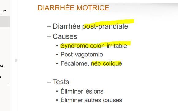 donne 2 ex de diarrhée motrice et un bon indice que c’est ca