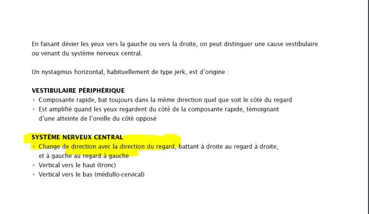 un nystagmus qui change de direction selon la direction du regard te dirige vers….