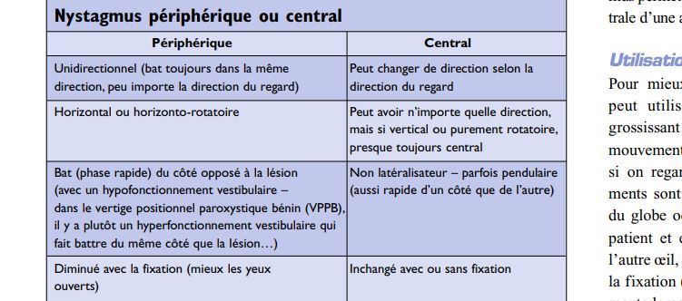v/f un nystamus périphérique sera inchangé par la direction du regard , mais diminué par la fixation de celui-ci
