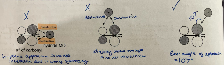 use diagrams to show that 107o is the best angle of nucleophilic approach