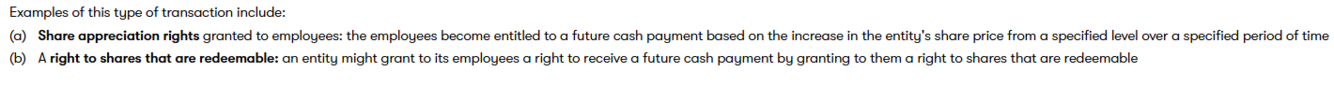 Cash settled share based payments
