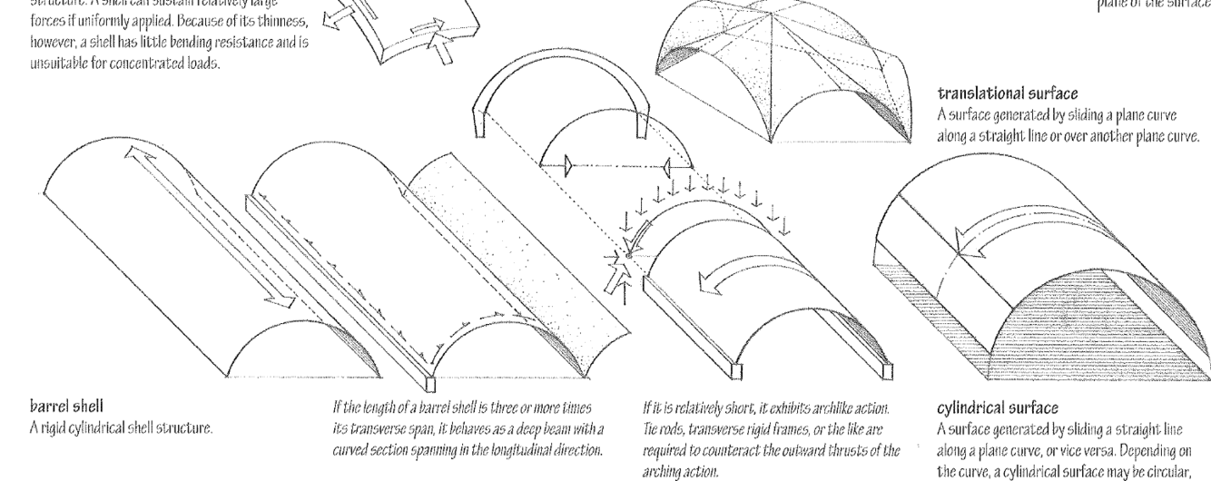 • If the length of a barrel shell is three or more times its transverse span, it behaves as a deep beam with a curved section spanning in the longitudinal direction.*