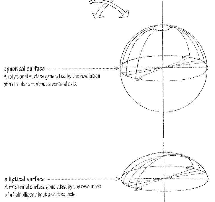 A rotational surface generated by the revolution of a half ellipse about a vertical axis.