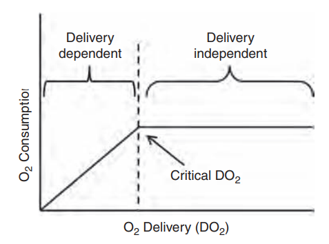 When the DO2 drops to a point when oxygen extraction cannot be increased enough to compensate and VO2 will drop with further decline in DO2