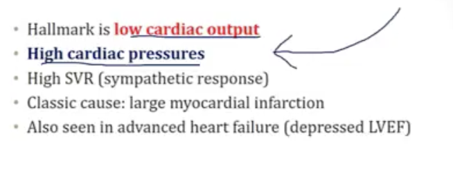what hameodynamic features are seen in cardiogenic shock?