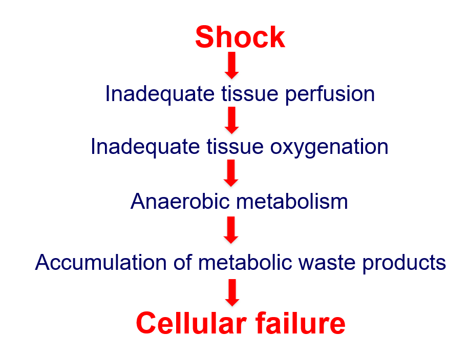What does the inadequate tissue organ perfusion in shock lead to ?