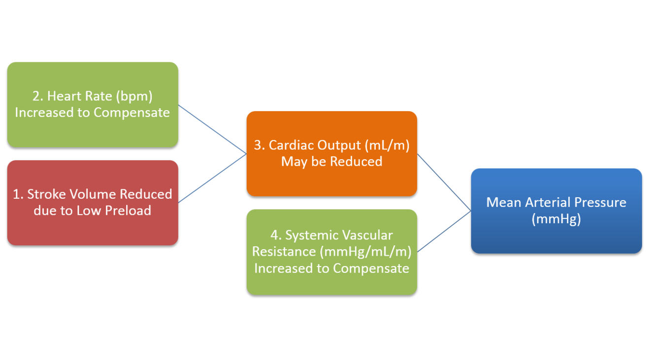 The body tries to compensate by increasing TPR this results in COOL, CLAMY peripheries