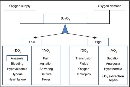 Decreased VO2: sedation, analgesia, hypothermia, decreased O2 extraction, sepsis
