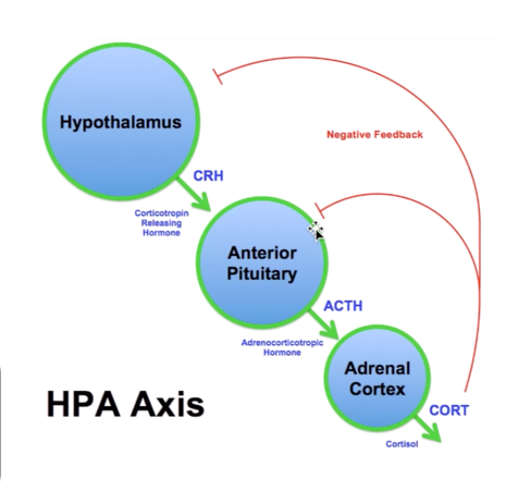 describe the mechanism of HPA axis (hypothalamus-pit-adrenal axis):