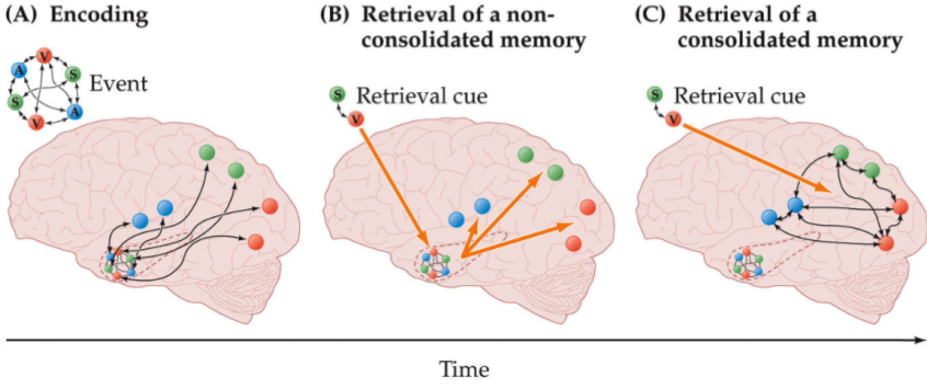 First during encoding sensory input is encoded in sensory systems and the hippocampus essentially points towards these sensory systems in the cortex.