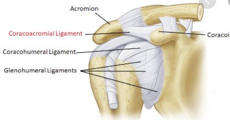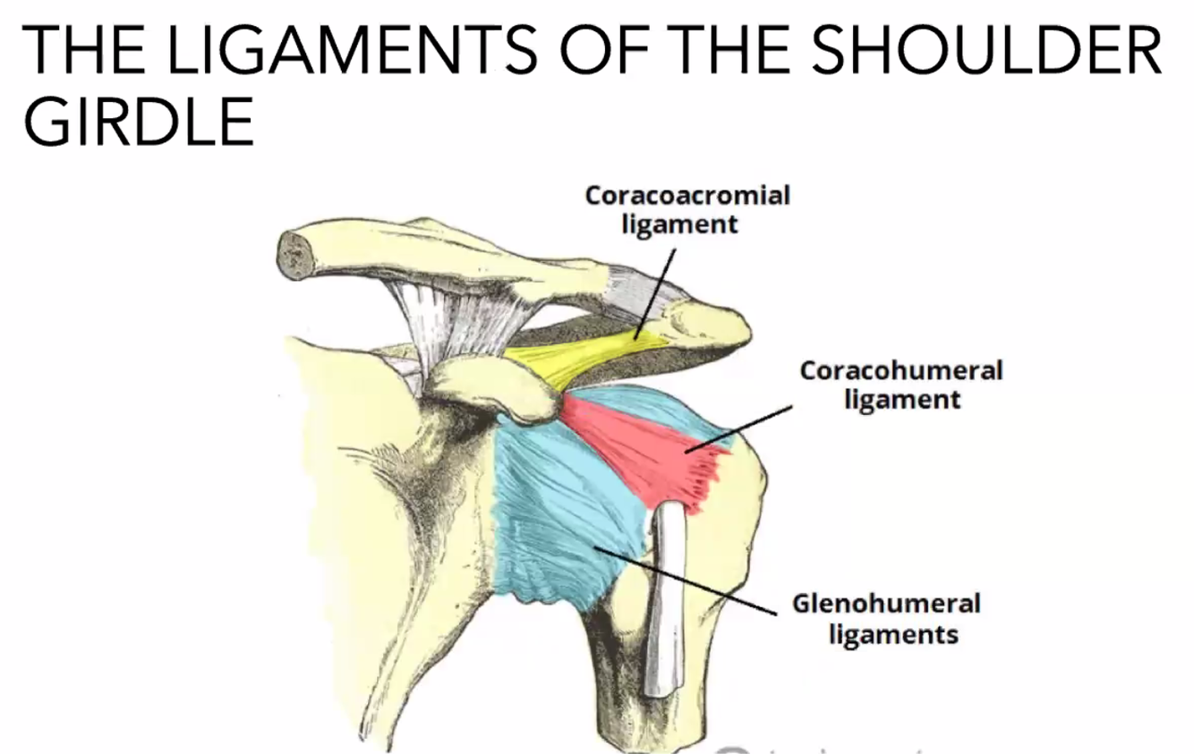 connects the acromion and coracoid process of the scapula, allows complex shoulder movement without separation of the scapula from the clavicle