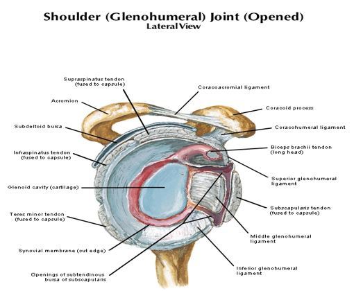 Glenoid labrum, head of humerus in rotator cuff muscles, and capsule