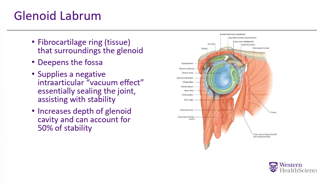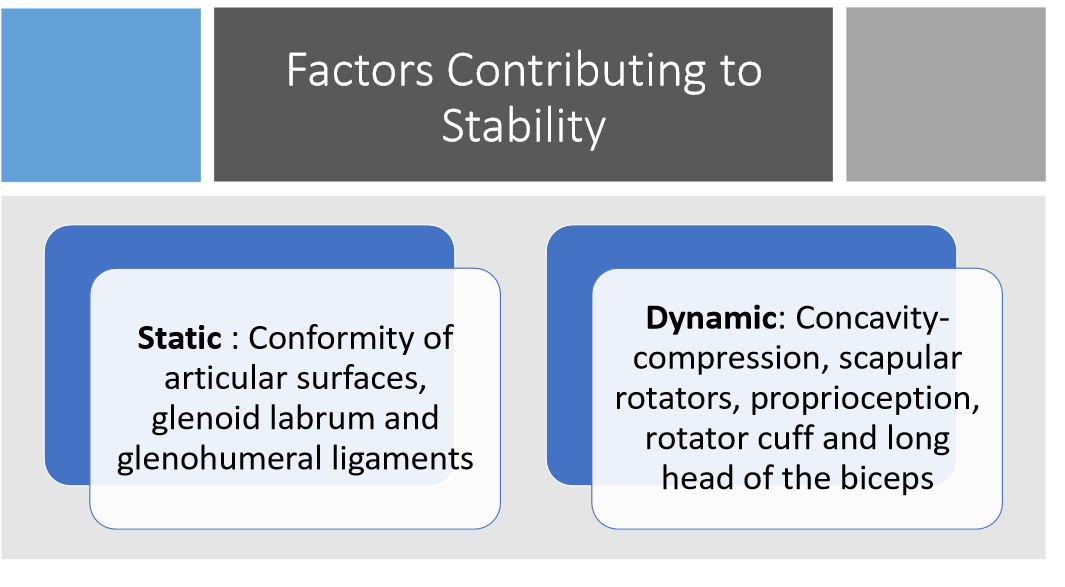 What are the structures that contribute to static and dynamic stability of the shoulder