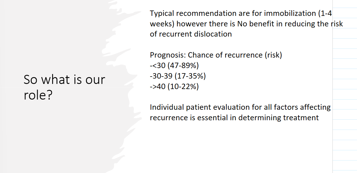 What are the recommendations for shoulder dislocation and the chance of recurrence for individuals