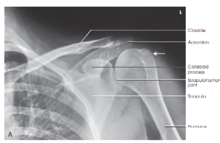 the bony and soft tissue structures of the shoulder and proximal humerus