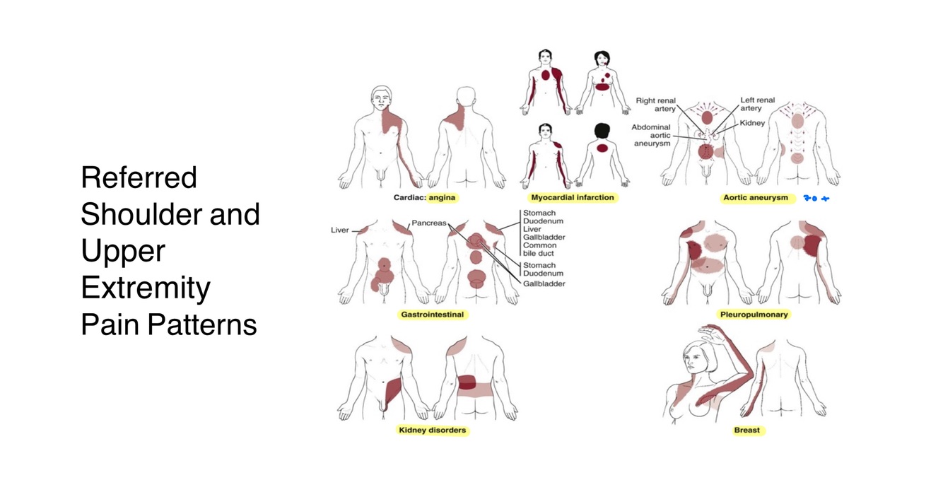 It may refer pain to the shoulder or upper extremity, typically without isolated shoulder pain.
