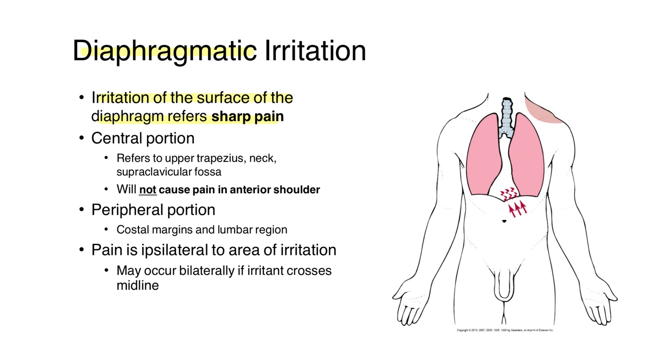 What are some of the classic signs and symptoms of diaphragmatic irritation referring to the shoulder?