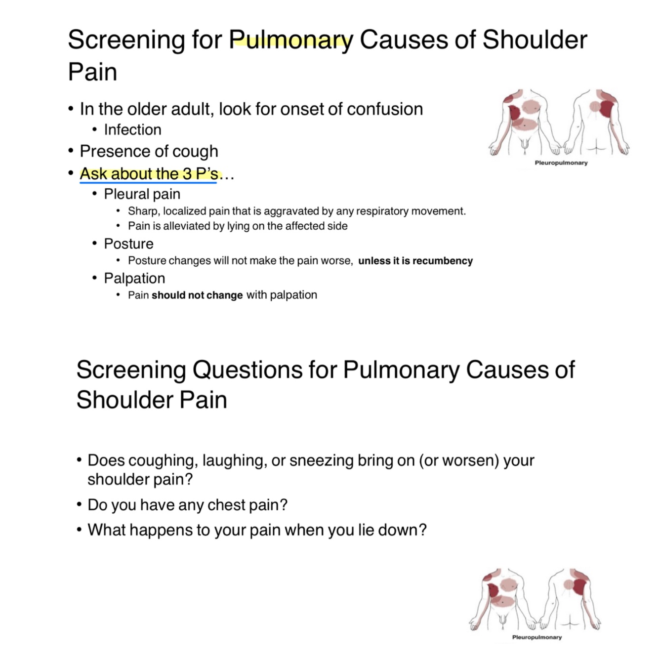 Pulmonary pain typically doesn’t worsen with postural changes unless associated with pleuritic components.