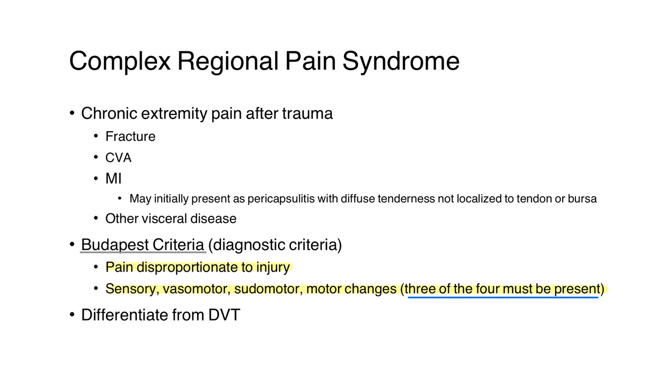It helps diagnose CRPS, requiring three out of four categories: