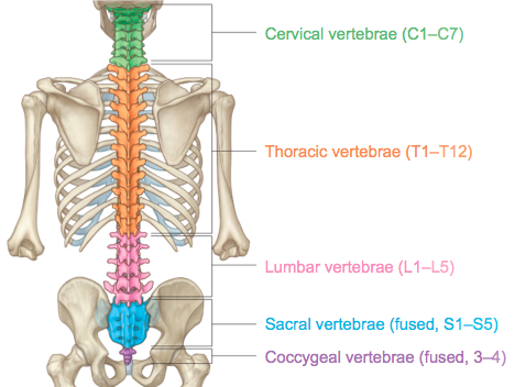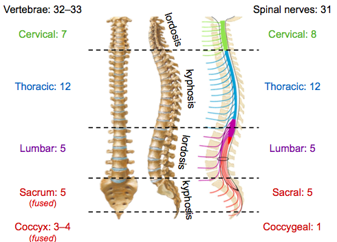 where do thoracic, lumbar, sacral, coccygeal spinal nerves exit?
