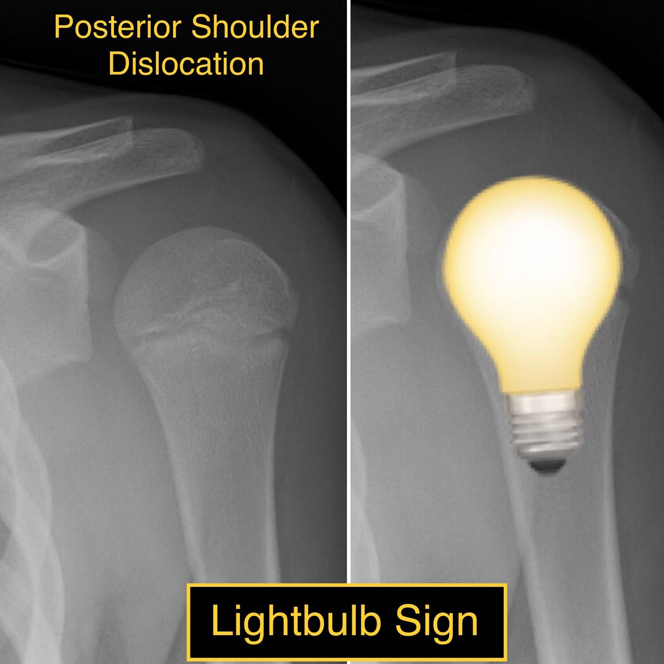 The lightbulb sign refers to the abnormal AP radiograph appearance of the humeral head in posterior shoulder dislocation.
