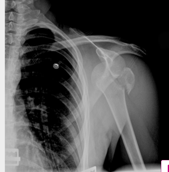 Scapular Y x-ray view showing an anterior fracture dislocation of the shoulder and fracture of the greater tuberosityPersonal collec