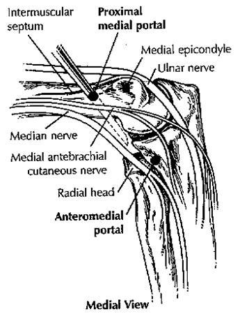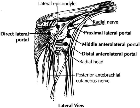 “soft spot” portal (in triangle formed by olecranon, radial head, epicondyle)