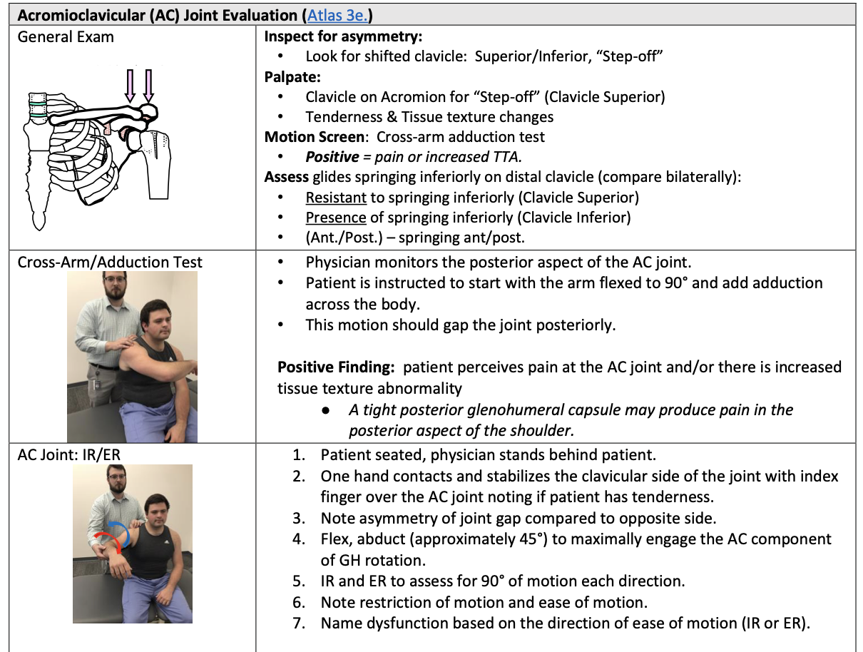 What are the 3 ways to evaluate the Acromioclavicular joint?