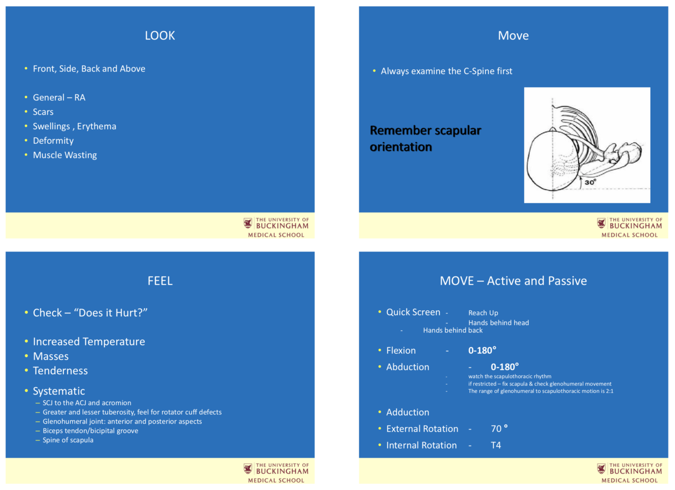 Jobe’s test (empty can test) ➞ arm abducted to 20, in the plane of the scapula, thumb pointing down