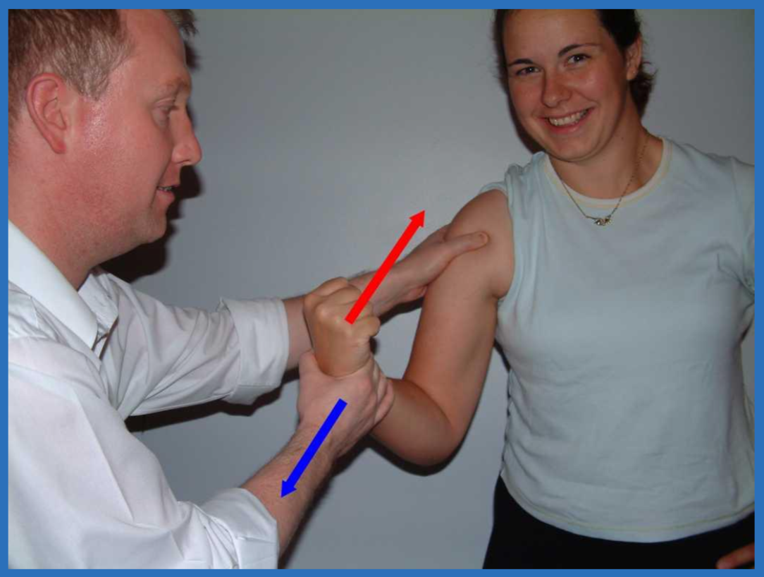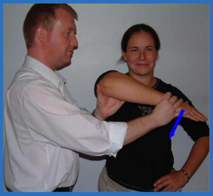 Forced cross body adduction in 90o flexion (+) pain at the extreme of motion