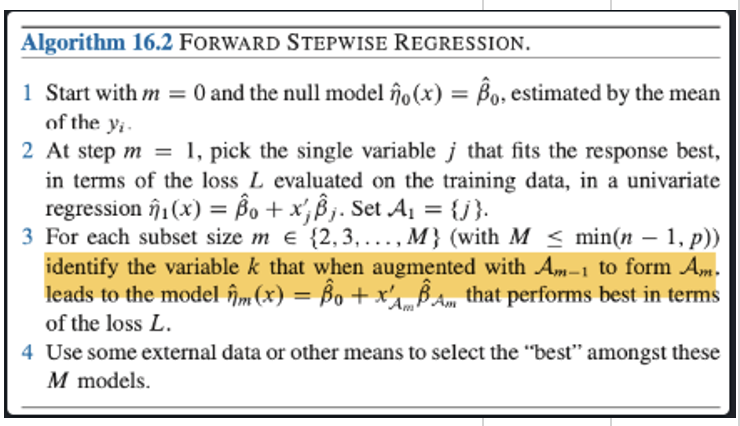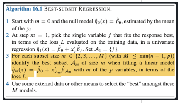 Step 3 is easy to state, but requires a lot of computation p much larger than about 40 it becomes prohibitively expensive to perform exactly—a so-called “N-P complete” problem because of its combinatorial complexity (there are 2^p subsets).