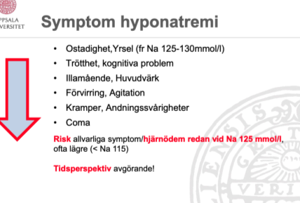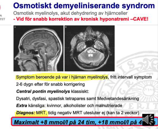 - S-Na ska korrigeras långsamt (max 8 mmol/L ökning per dygn)