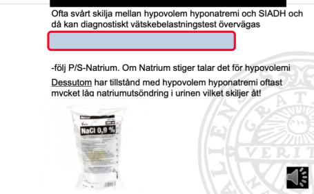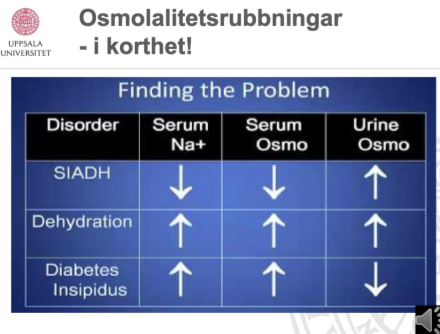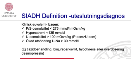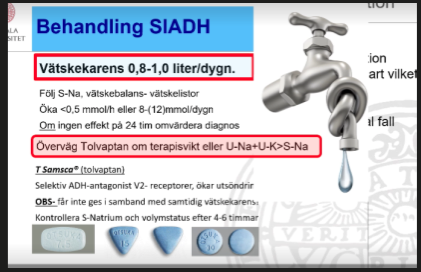 Om vätske och saltbrist –> S-Na stiger. Om SIADH –> S-Na förändras inte/sjunker.