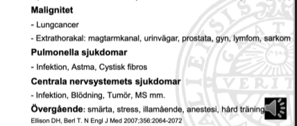 Vilka sjukdomar kan orsaka SIADH? (cancer, lunga, CNS)