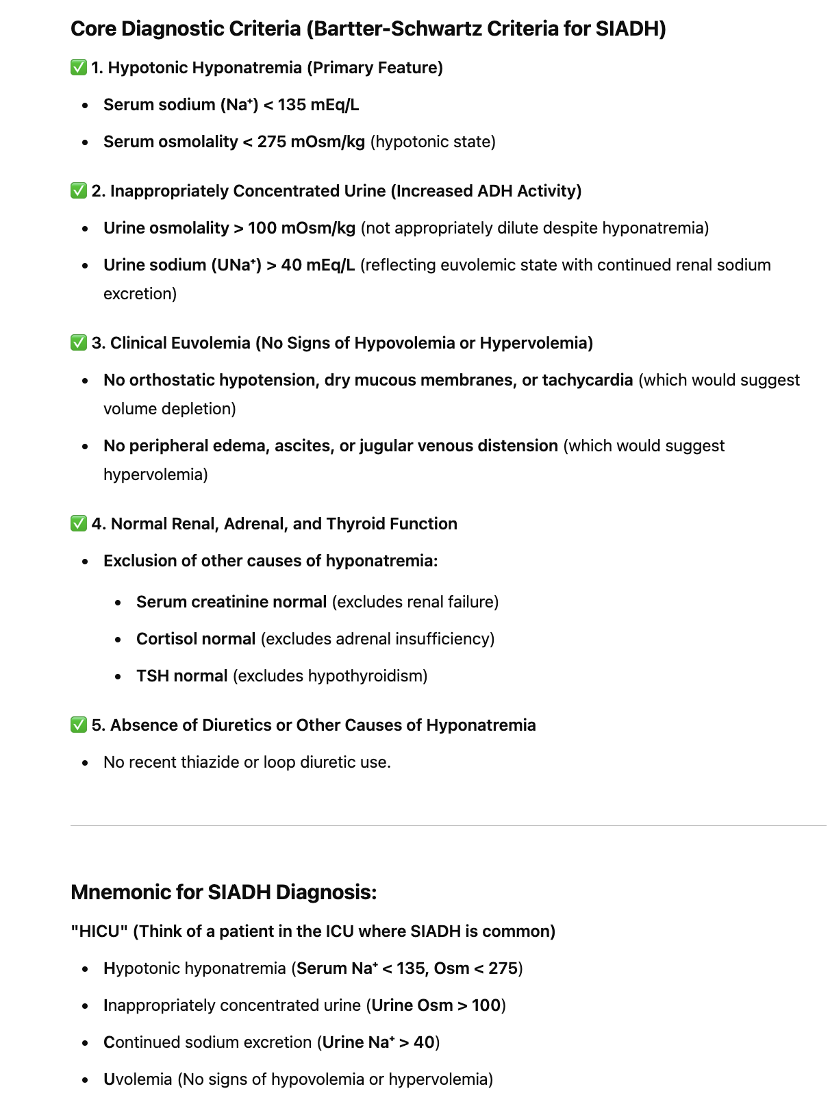 What is the diagnostic criteria for SIADH?