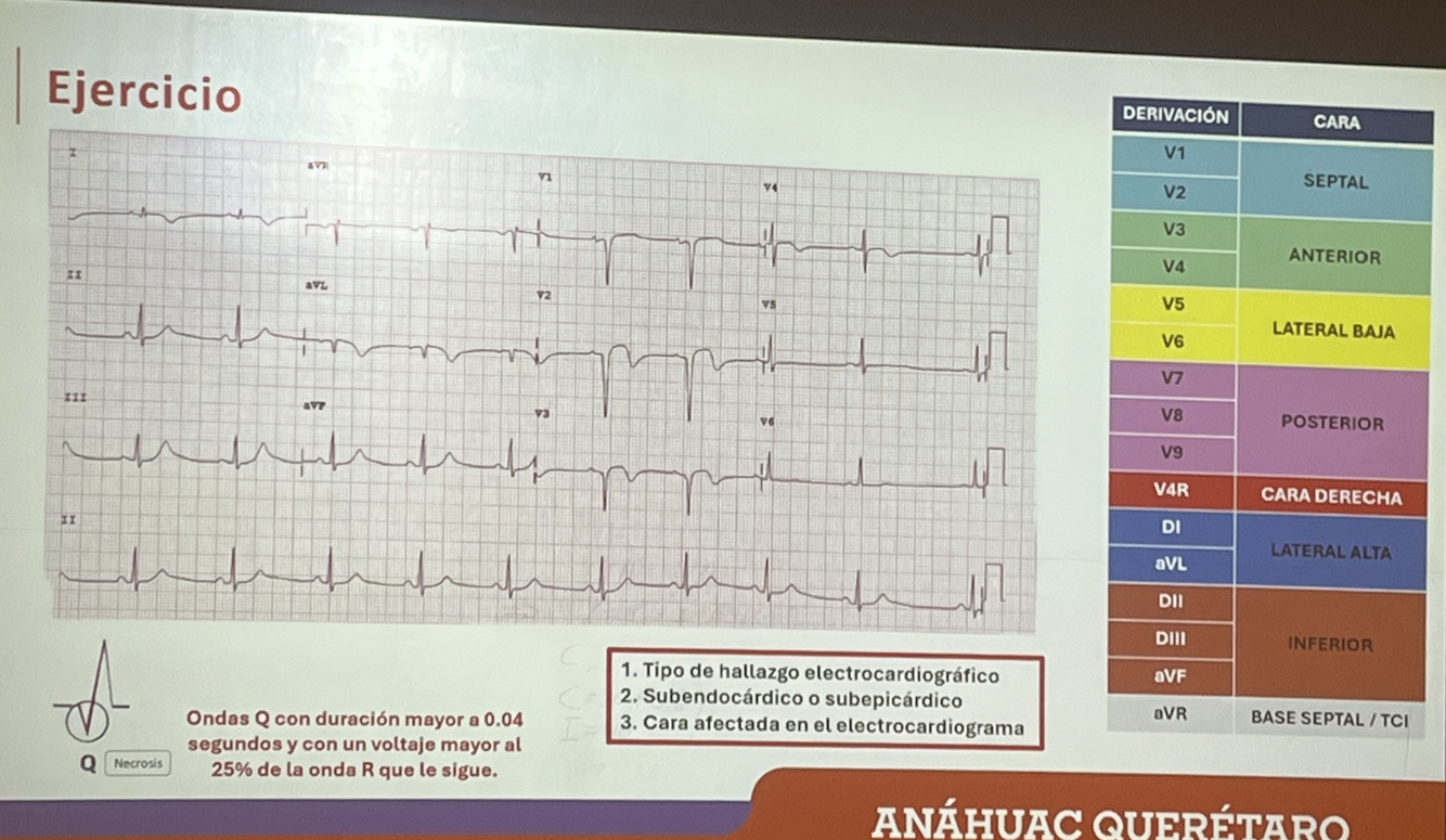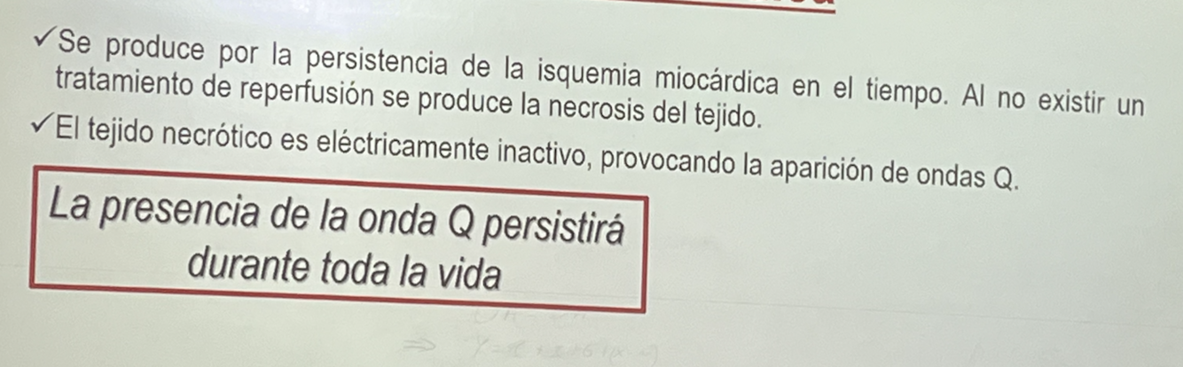 Ondas Q con duración mayor a 0.04 s y con un voltaje mayor al 25% de la onda R que le sigue.