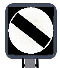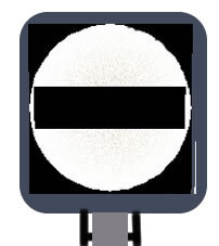 A red, square-ended arm with a vertical white stripe at the end