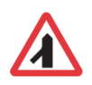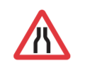 Road narrows on both sides