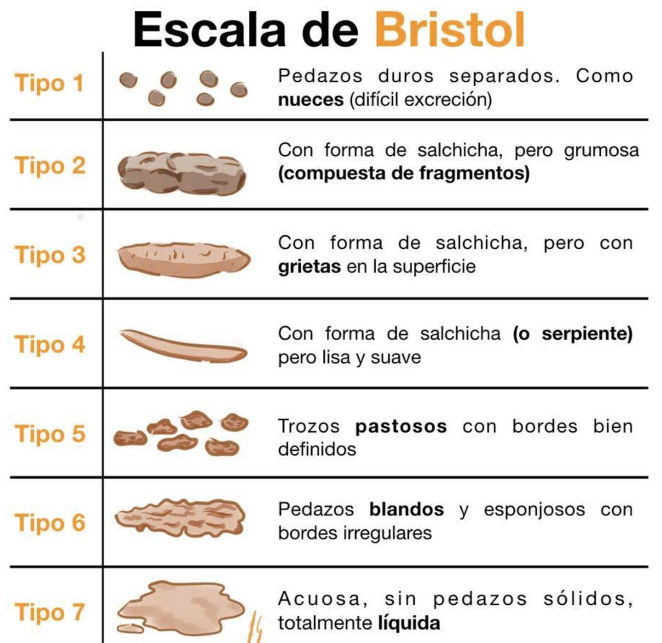 de acuerdo a la escala de Bristol, en el SII con diarrea la caca es _