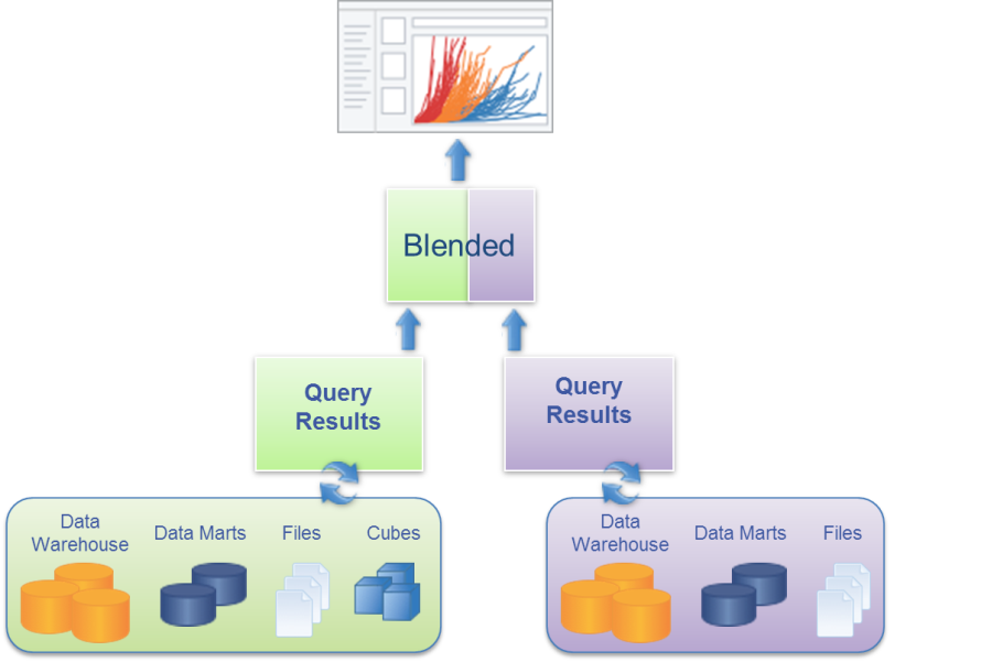 No, joins (in the multiple tables’ scenario) happen in the database with the raw data as part of one universal query. Blends happen in Tableau with the already summarized (aggregated) data. This means that Data Blending sends a separate query to each database. These queries aggregate the data to the same level of detail – regardless of the level of detail of the raw data. Then the results of the separate queries are blended together by Tableau.