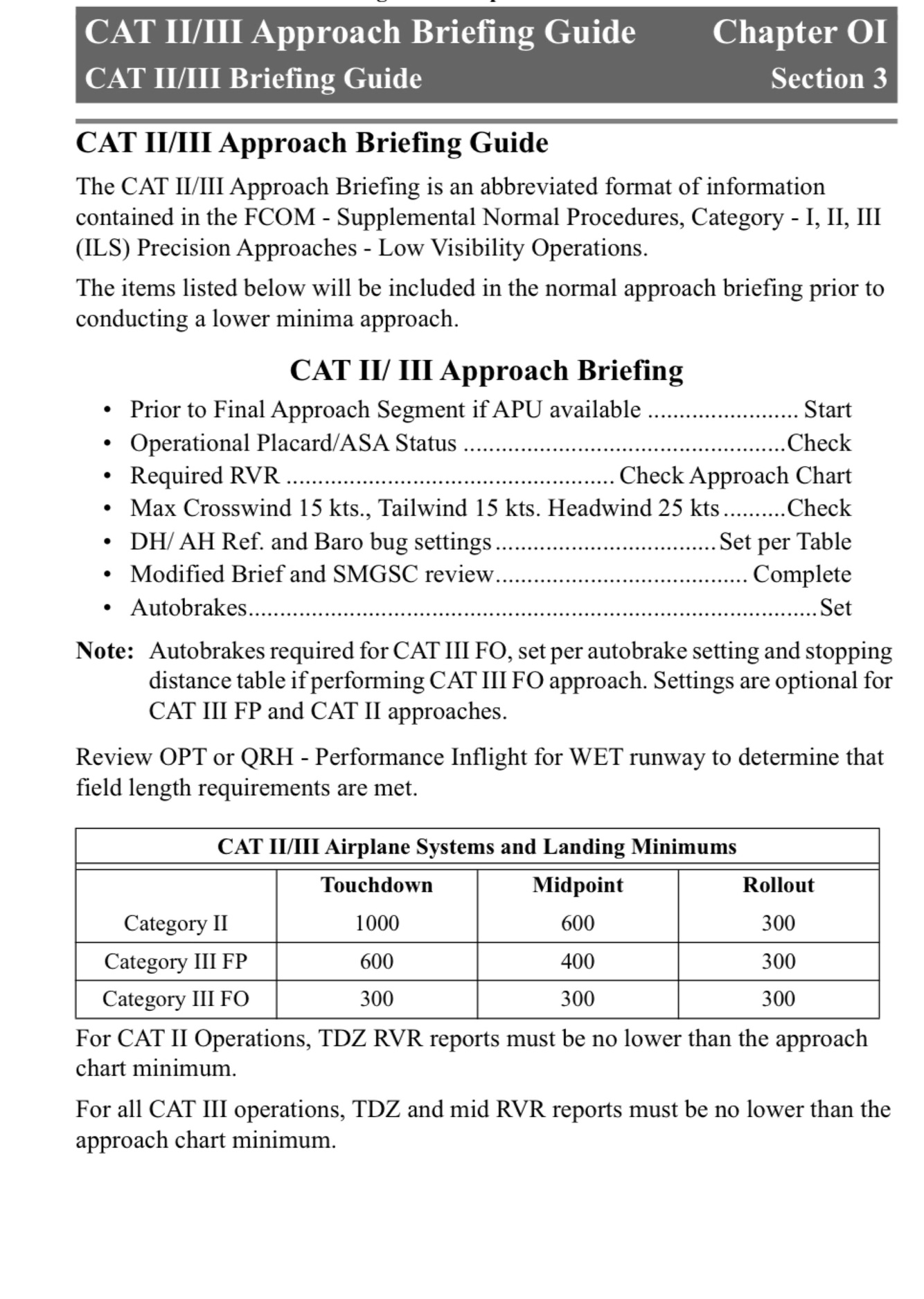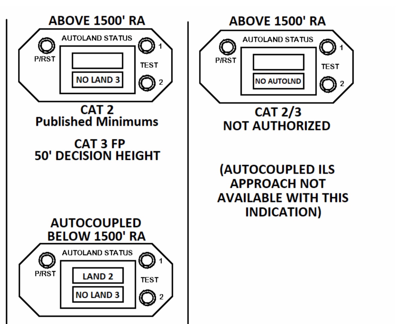 CAT 2 or CAT 3 ( FP ) : 1. What ASA indications will show during a approach ? 2. What are the Category III FP landing minimums ? 3. What is the landing flap setting ? 4. What radio altitude do you bug ?