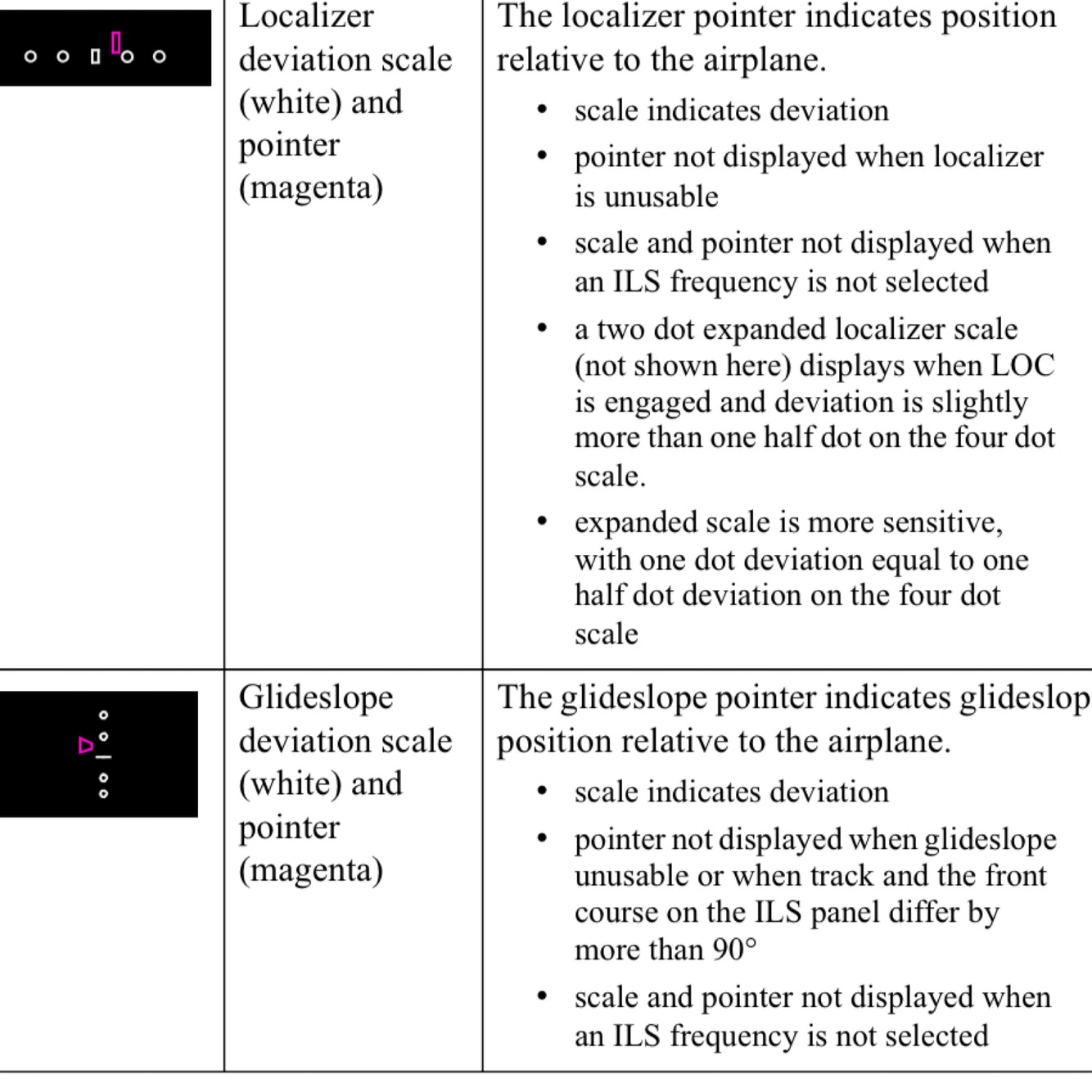 ILS -full deflection , RNP- alert message that Indicates ANP exceeds RNP