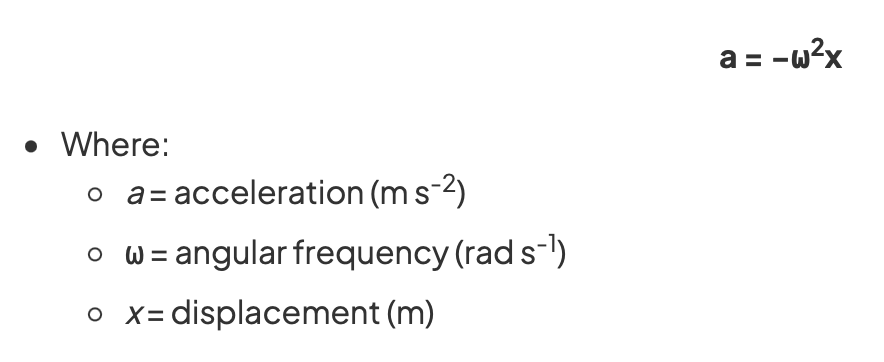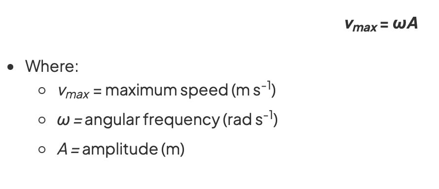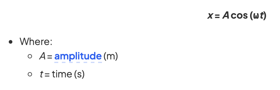 (The displacement will be at its maximum when sin(⍵t) equals 1 or −1, when x = A.