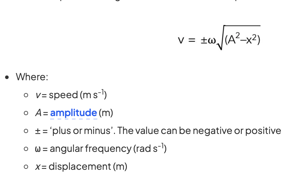 at the equilibrium position. Its speed is 0 at its positive and negative amplitude