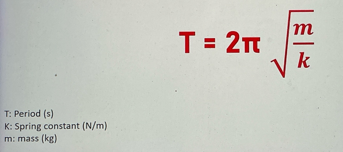The formula to calculate the period of a simple harmonic motion of a spring.