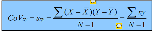 SXY = covariance of X and Y ∑xy = sum of the cross products. The deviations of pairs of X and Y scores from their means