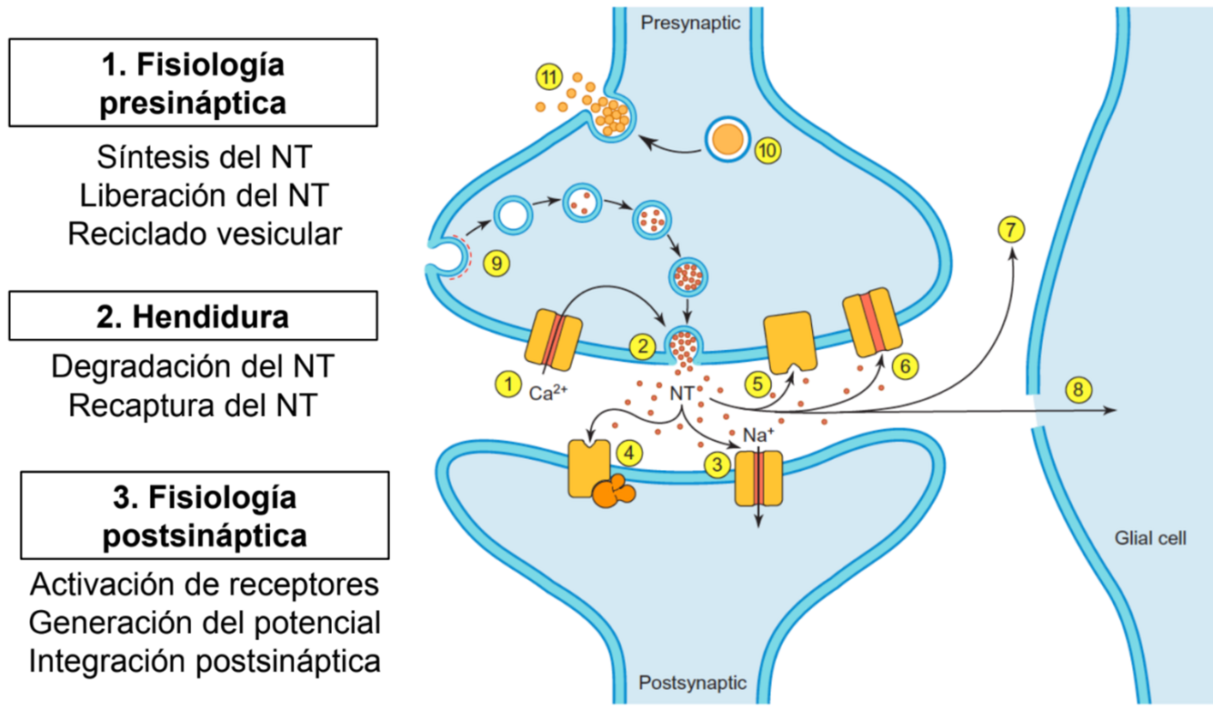 Pasos de una sinápsis química