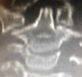 RX Transoral, que avalia a presença de assimetria no espaço entre o odontóide e as massas laterais de C1.